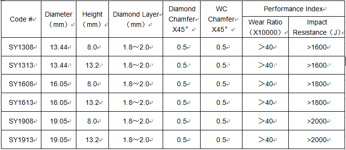 SY series PDC for petroleum and gas drills has high impact resistance and wear ratio,