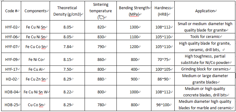 Pre-alloyed powders exclusively for diamond tools